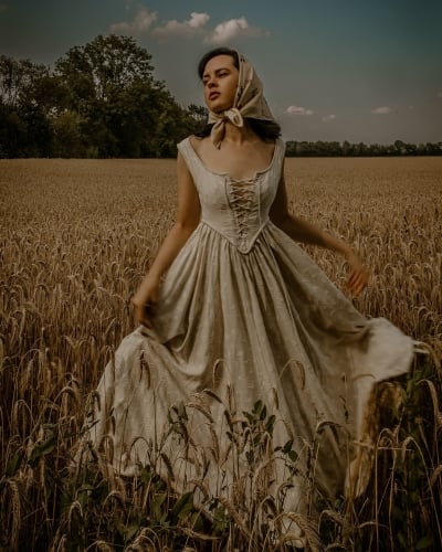 Anis 23 | Lace-up Jacquard Linen Corset Dress