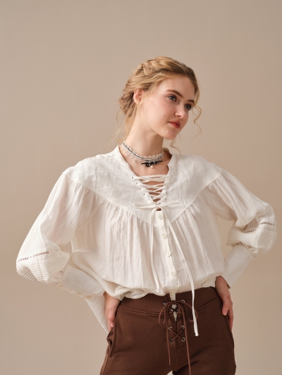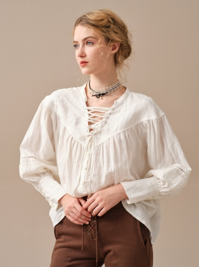 SARAH 17 | LACE-UP LINEN SHIRT