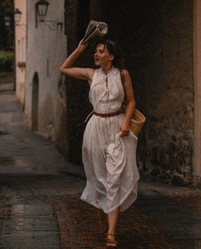 Elysia 15 | Lace-up linen flared dress